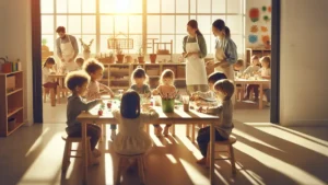 Dlatego plan dnia z zabawami Froebla dla przedszkolakow nie jest 'zajeciami w sekwencji’, lecz spojnym cyklem 4 obszarow: krag z piosenka, praca z darami, kontakt z natura, prace reczne. Kazdy dzien konczy sie refleksja – fundamentalna zasada pedagogiki Froebla, powtarzalna w podejsciu Reggio Emilia 100 lat pozniej.